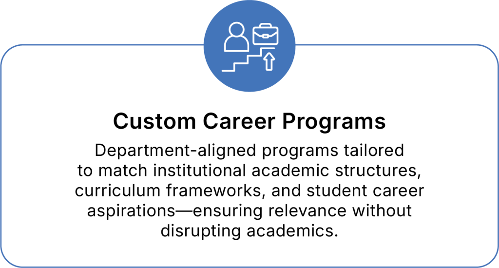 Department-aligned programs tailored to match institutional academic structures, curriculum frameworks, and student career aspirations—ensuring relevance without disrupting academics.