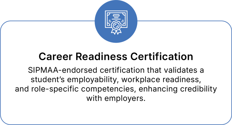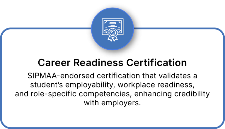 SIPMAA-endorsed certification that validates a student’s employability, workplace readiness, and role-specific competencies, enhancing credibility with employers.