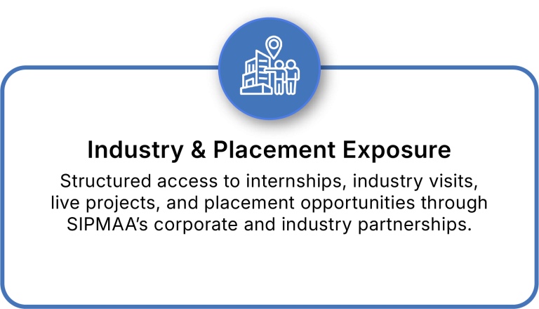 Structured access to internships, industry visits, live projects, and placement opportunities through SIPMAA’s corporate and industry partnerships.